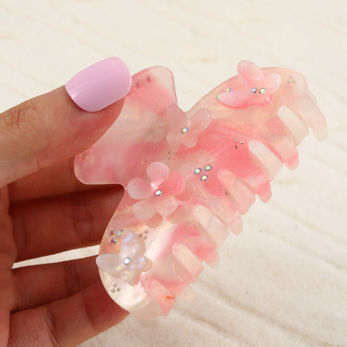 Cross-Border Elegant Small Fresh Stereo Acetic Acid Hairpin Clip Butterfly Flower Hair Accessory Back of the Head Shark Clip for Women