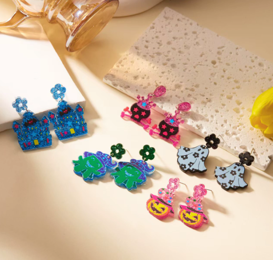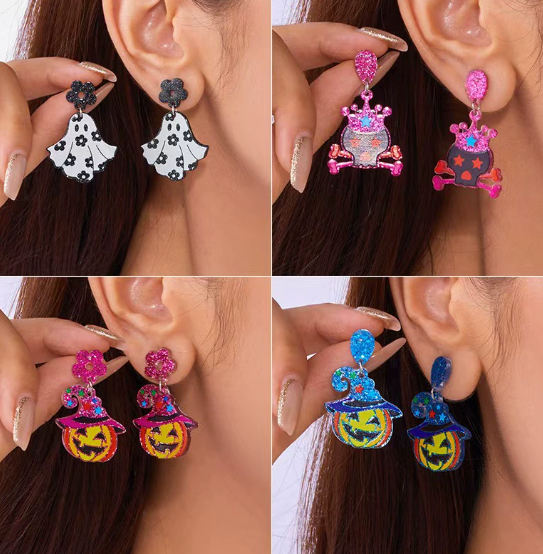 Halloween earrings women's creative Halloween pumpkin head ghost pendant acrylic earrings