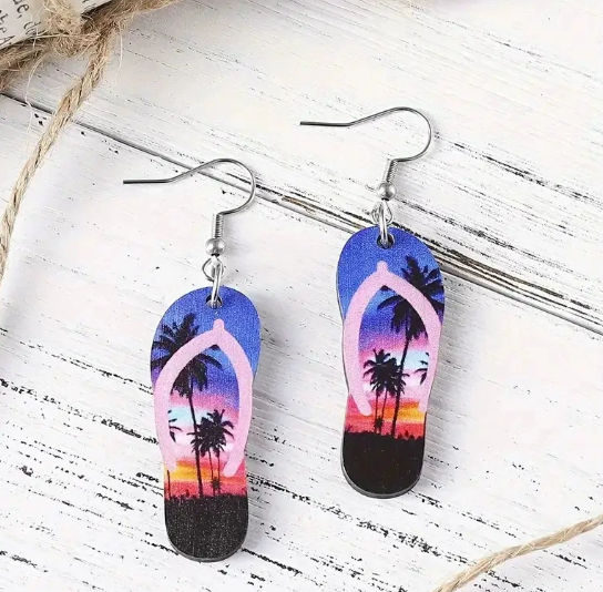 Ocean style pendant earrings, acrylic slippers, design for seaside parties with everyday wearER001